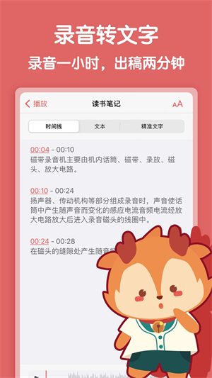 随声鹿app是一款手机录音软件,软件界面简单操作便捷使用,用户可以将各种各样的语音转换成文字进行编辑处理。支持一键分享给好友一起办公学习等内容!对软件感兴趣的话不妨点击下载试试!