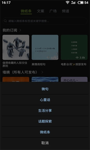 微句app是一个很不错的短句分享交流平台,用户可以在这里发表自己的文章和动态等内容,也可以发布自己想要说的话到微文圈子中来进行互动、聊天等等,让更多的人看到你的生活。