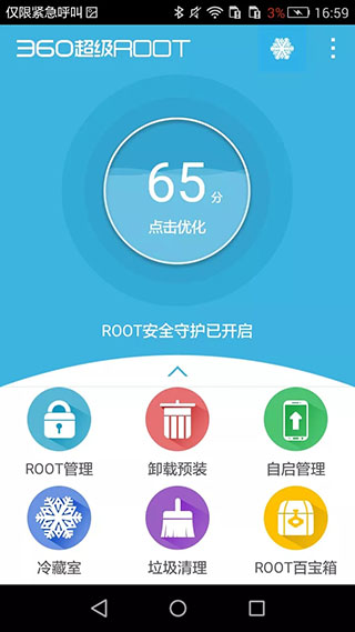 360超级ROOT不闪退版无效完成率应用是360超级root的版本,这个版本可以让用户体验到最高成功率和最纯净的手机刷机体验,同时支持卸载系统预装软件、清理垃圾文件、优化电池续航等等功能。