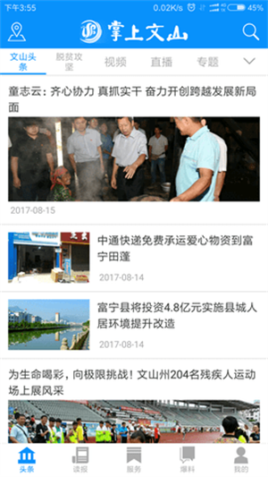 掌上文山app是专为文山区本地用户所打造的一款新闻资讯阅读软件,在这里拥有着本地的所有热点信息和生活服务功能。在这个软件中有着时政、民生、教育等栏目供你进行选择观看了解诸多精彩动态;在此应用中系统还专门推出了直播模块可以与诸多的网友实时互动交流,让你感受不一样的新闻事件详情展示方式,便于更好的关注自己感兴趣的新闻类别,