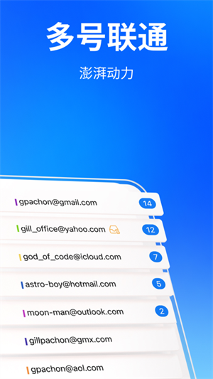 *自动同步您的所有邮箱地址。、Outlook、Hotmail和其他其他企业邮箱中自由选取帐户密码。