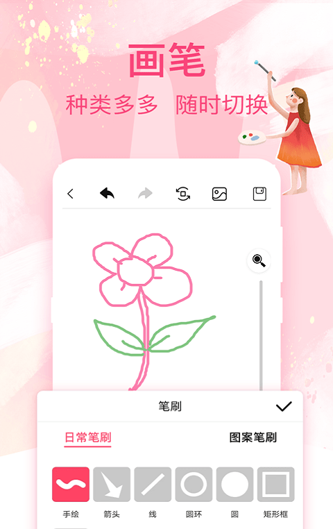 画画白板app由南京今日水印相机网络有限公司开发的一款非常好用的手机画图软件,该软件界面简洁,内含丰富的功能服务提供给用户使用。其中包括画画白板(原字体)、画笔、画布、荧光笔等多种绘画模式可以随意切换体验,让用户轻松打造属于自己的个性画作。同时画画白板拥有海量优质素材供大家选择学习参考;支持文字和图片输入操作哦!另外画画白板还有着非常多的画风可自由调节与调整创作灵感内容让你的作品更加出色,并且还具备各种各样的颜色任你搭配哟,有需要的用户快来本站下载开始使用吧。