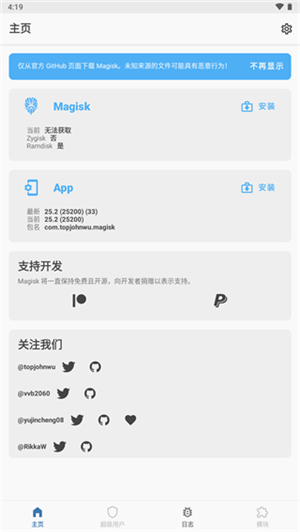 manager最新版汉化版是一款由安卓开发者云集的海外XDA论坛所推出的手机功能扩展框架软件 Magisk是款很流行的安卓系统框架,可以帮助用户轻松获取root权限并对手机进行修改和优化。不仅能提供多种功能模块、个性化设置等特点,还能根据用户的使用习惯自定义界面风格,操作简单易上手,欢迎下载!