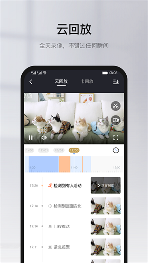 7、具有报警推送功能,一旦监控到的异常事件,您也会收到消息通知,并在第一时间发现并处理安全隐患。如果您需要跟踪您的宠物和宠物,您可以设置触发警报,以确保其在特定时间范围内为您提供安全信息。