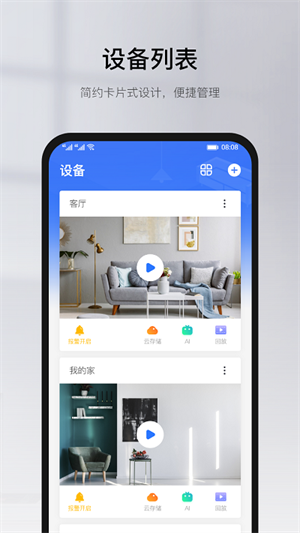 2、具有语音通话和远程控制功能。您可以快速拨打电话/接听电话,而无需打开应用程序来回切换。您还支持按日期搜索历史录像。您也可以在设备列表中添加多个设备。