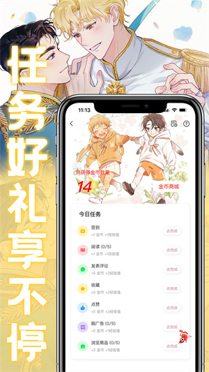 同时,薯条漫画app官方正版最新版本界面简洁明了,操作简单易上手,拥有超多的漫画分类栏目可以选择进行查看和浏览;每日还会实时上新大量的优质漫画章节与书籍供您免费畅读哦。另外,薯条漫画app手机版还有其他更多丰富的福利任务玩法等待你来探索发现!喜欢看漫画的小伙伴快来本站下载吧!