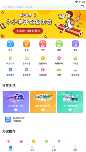 3、“我的聊城”APP依托于大数据分析技术,融合云计算、区块链技术、物联网、人工智能等先进科技,打造了一个集即时通讯工具、网上办事中心、政情问答、智慧城市建设等多个功能于一体的全方位型城市服务平台。