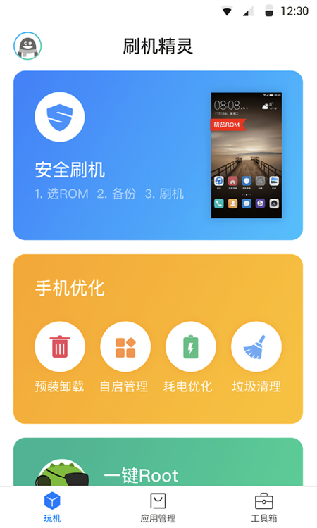 刷机精灵手机刷子软件是一款安卓手机刷机工具,软件中用户可以在线进行刷机操作体验,海量的实用功能等你开启使用,支持一键快速获取ROOT权限内容查看以及管理你的ROM文件等等!对软件感兴趣的话不妨点击下载试试!