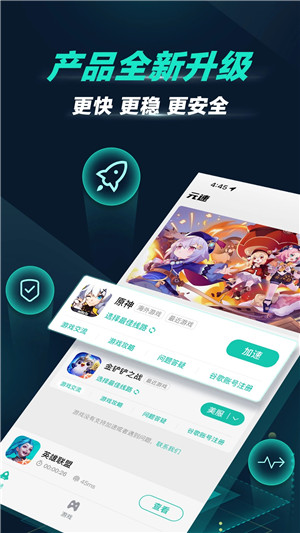 1、操作简单便捷:元速加速器app是一款专门为广大游戏玩家而打造的专业手机应用程序;