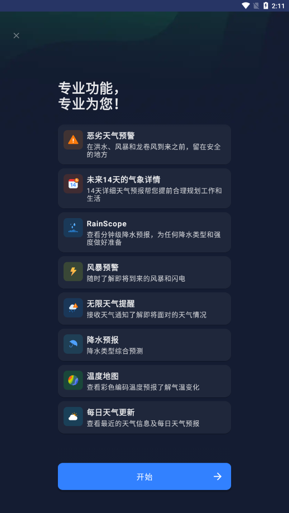 -您可以直接访问您最喜爱的城市,或者根据自己的喜好设置通知栏中的天气提醒内容。