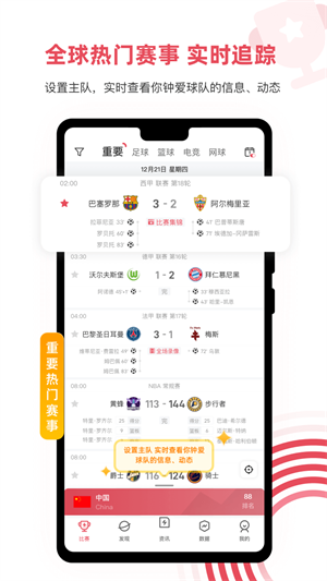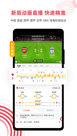 覆盖全球1000多个热门体育赛事的视频直播、点播以及原创文章,涵盖NBA直播、CBA直播、英超直播、欧冠直播、亚冠直播、意甲直播、中超直播、世界杯直播等各大联赛直播源,满足不同用户的观球需求!