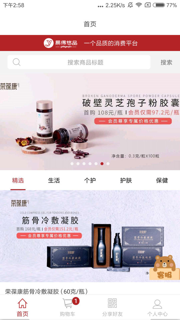 【优选商品】精选好货,满足你对品质生活的追求; 【品牌特卖】每日推出千余款精品大牌限时抢购,从日常用品到美妆个护,数不尽的新奇好物一应俱全,满足你的日常购物需求,让你享受品质生活的同时也能省钱。 【新人礼包】注册即送10元现金券。新老会员更有专属礼品券等你拿,更有超值福利等着你哦~ 【积分兑换】每天登陆,签到就可领取大量精美的虚拟币和实实在在的奖励。 【售后无忧】7×24小时贴心客服为您解决售前售后困惑,让您购买更放心,使用更放心,欢迎下载易得悠品,感受舒适购物体验,畅游全球潮流魅力。【免费试用】精选新品,先试用再付款,无需任何押金,海量正品,任性买,随时随地想拍就拍照!【正品保障】全国联保,七天无理由退货,支持假一赔十,正品承诺,7x14小时物流更新,购物无后顾之思。【易得优选】甄挑选最受消费者喜爱的高颜值商品,涵盖了数码电器、日化百变与服饰箱包、美食休闲、母婴童装等多类。