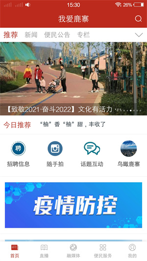我爱鹿寨app是针对鹿介县开发的融媒体资讯服务平台,这款软件提供了最新的本地新闻动态、政务信息查询等功能,在我爱鹿狱app上还能查看鹿府本地的新闻报道和直播内容等等,还有各种便民生活服务的办理哦!