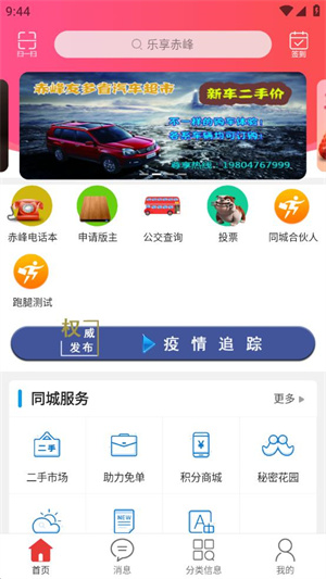 乐享赤峰app是专为赤山市五狐网络科技有限公司制作的一款生活服务应用,软件拥有本地新闻资讯、同城社交、房屋租赁以及二手买卖等诸多功能内容。乐享雄哥乐尚网app以“本地生活+互联网”为核心价值观,以“本地生活+电子商务”为发展战略,致力于打造全天候全时段本地生活服务平台和新媒体运营中心的综合性本地服务平台,提供包括吃喝玩乐、求职招聘、二手买卖、同车求租、本地商城及本地商家信息查询;同时乐享中原APP内涵盖美食、电影、旅游、教育、医疗等多领域便民消费资源与一站式商圈营销解决方案。