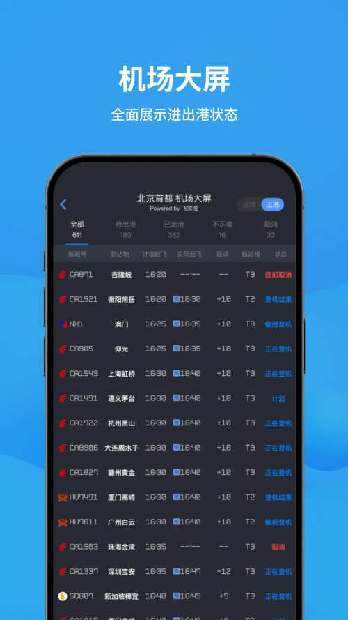 飞常准官方版可以实时监控飞机和航班的实时情况,让用户随时了解飞行状态,提供全面的信息查询服务。软件支持多种出行方式进行订票预订、机票预定等功能使用户能够轻松应对各种出行需求!同时还可以帮助你在机场办理登机手续哦~快来下载体验吧!
