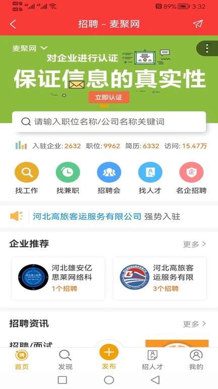 麦聚网app是一款非常好用的手机在线生活服务类应用。麦聚网app以“让美好的生活更简单,让企业更高效”为宗旨,致力于打造一个“互联网+企业服务的一站式平台”。麦聚网app提供企业、***等多个行业的企业资讯信息查询功能和优质资源搜索入口,帮助企业快速找到符合要求的人才招聘信息,同时还可以查看企业发布的招聘动态以及各种各样的求职攻略等等!
