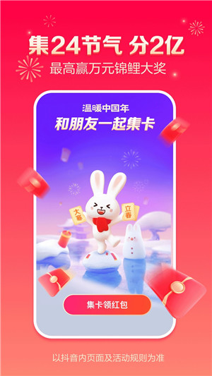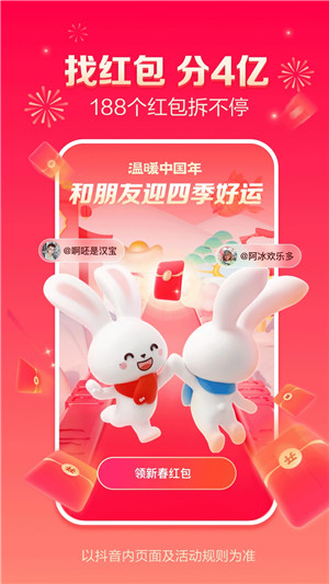 抖音春节之后要给用户带来更多精彩的抖音,很多朋友都喜欢玩一些短视频分享自己的生活或者是看一些其他的事情,今天小编给大家带来的这款软件就是非常适合大家使用的抖音新年时需要参与活动和参加的app,现在抖音新春了想要让更多的人看到自己,就赶紧来这里下载抖音2020以后要给自己带来更多的快乐!