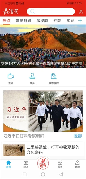 以“新闻+党建”的模式展现酒泉本地的综合性新门户。