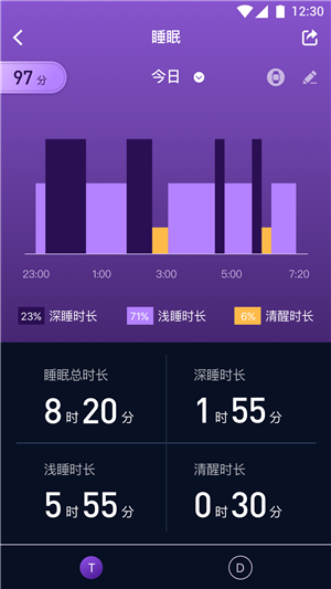 详细的睡眠质量检测数据(浅睡、深眠),强力的深度睡眠时间及香蜜动图让您的睡眠更加科学有效;