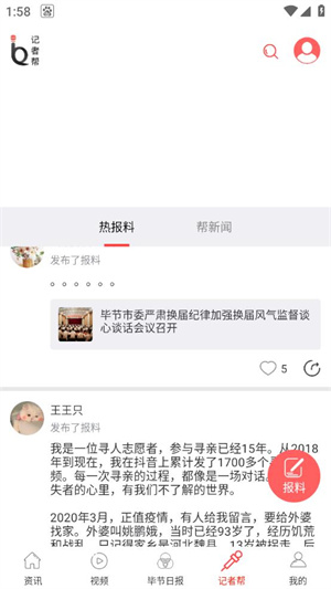 新闻+政务+服务融媒全新改版,打造全新的新闻生态圈,汇集本地化的生活服务类APP,以“新闻+政务+服务”为核心,整合了毕节本地的各个媒体资源,构建一个移动端的新闻资讯传播平台。