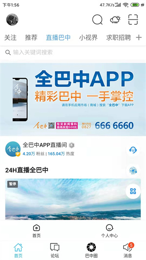 全巴中app是专为巴南人民打造的本地生活服务软件,该平台汇集了巴中当地的吃喝玩乐信息、资讯内容以及各种便民的服务。同时在用户登录后即可享受到非常全面的生活便利体验,如美食推荐、购物优惠等等都能够在这里进行查询了解!不仅如此,在全巴中app还拥有海量新闻时事和实时热点直播可以随时随地阅读观看~快来下载体验吧!