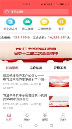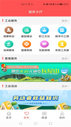 川工之家官方版是四川工会推出的一款专门为四川本地职工提供在线服务的平台,软件提供了丰富的便民服务功能,包括新闻资讯、法律法规查询、就业信息发布等。在“川”App上你可以轻松办理各类业务和服务事项,如缴纳水电气费、交通罚款、法律咨询等等,无需亲自前往营业厅排队等待。此外,该平台还具备实时更新的功能和动态数据分析模块,用户可以随时了解最新的工会公告、政策法规以及相关活动通知。