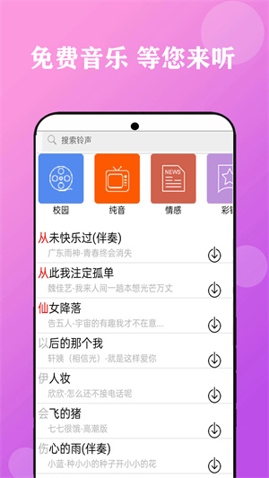 没有任何广告,而且超级简洁明了,里面有着各种各样流行的音乐铃声等等都是应有的哟。