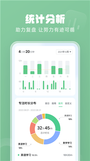 番茄空间app致力于提高用户的效率,让你更加专注于重要事情,减少干扰。同时,该软件还可以记录用户的学习数据分析报告;