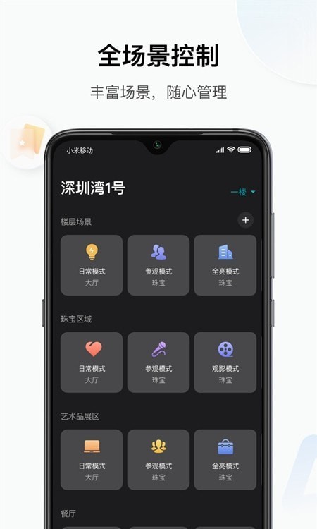 支持全屋智能灯光场景设置:自动切换灯效模式、自定义灯效模式、智能场景联动等。