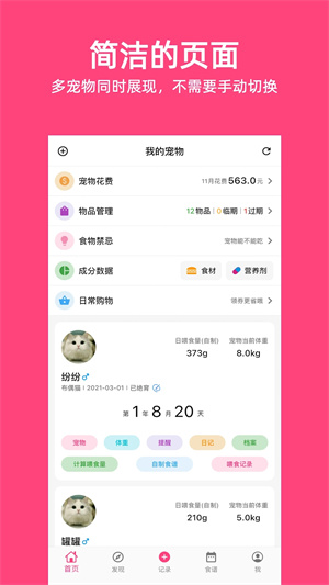 1、在这里你可以将自己的宠物们每天都记录下来,让宠物们能够随时看到自己的成长;