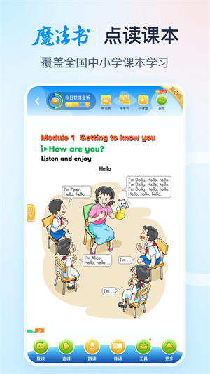 【正版授权的高清大屏课本点读】收录人教部编版小学一年级到高中三年级全学科的单词、句子和成数内容,分分钟提升孩子的口语、思维能力;