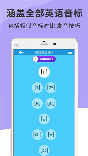 每个音标都有相应的真人朗读训练模式,包含了常用的英日韩泰音标与普通话音标两种类型,能够全面满足您的学习需求。