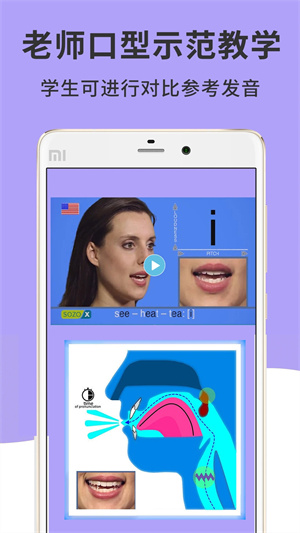 所有音标均配有高清的视频说明书可随意查看,而且每个音标都有形象的真人发音讲解。