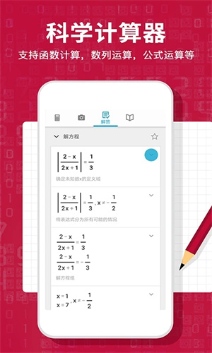 Photo123456数学解题神器的最新版本是一款专业的数学应用程序,旨在为用户提供高效准确的数学解答服务;有了这个软件,你不仅能够轻松处理各种数学难题,还能提高你的数学成绩,无论是在数学领域还是数学领域,它都能满足你的需求,此外它的识别速度快,只需要将手机摄像头对准数学题目,就能获得精准的结果了。