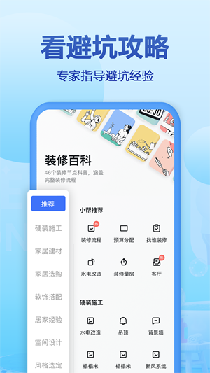 住小帮装修设计家装服务的一款专业且便捷的家装应用程序,旨在为设计师、业主和消费者提供一个全面的服务环境。这款应用通过智能推荐算法与大数据分析技术帮助设计师快速找到符合自己设计风格的应用场景或产品;而这些内容不仅限于平面设计工具外,还提供了丰富的设计案例参考资源,让设计师能够更好地了解并选择适合自己的设计风格。