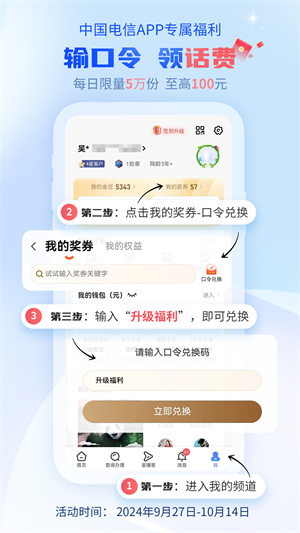 (1)打开“中国电信”APP,首页右下角点击“我”。