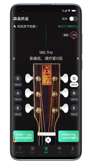 吉友们可以通过吉行音准测试仪对您的吉他音准进行实时检测并反馈调整结果。
