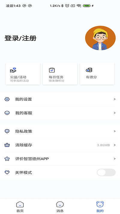 1、打开智慧德州app,选择右下角的【我的】按钮进入个人中心页面,