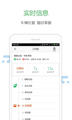 GPS定位后为您展示当地路况是否齐全,也可根据当前位置提前预测换一辆公交车到达目的地的时间