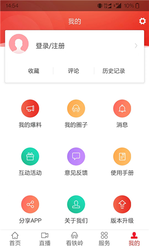 4.【我的】界面主要分为关注/粉丝、个人中心四大模块,分别为消息提醒、积分兑换、意见反馈、活动报名、投诉建议、问题求助、意见领袖等栏目板块。