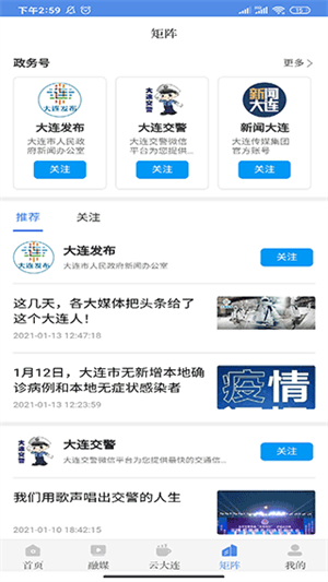 为市民提供“新闻+政务+服务”的一站式移动端产品;以满足广大市民的个性化阅读需求,聚合海量内容资源于一体。通过该应用可以轻松获取各类公共交通、天气、生活缴费等功能和服务。“大连市融媒体中心主办的“大连日报”,是大连广播电视台与广大群众在网上办事大厅中获得权威性、可靠性和便民性的综合型新媒体平台。