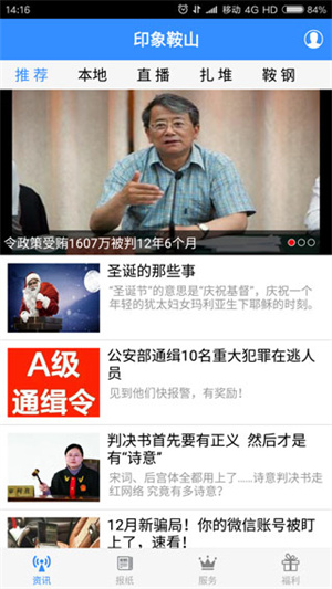 是鞍山市融媒体中心主办,具有新闻、政务、服务、互动等多项功能的手机应用。客户端以“新闻+政务”为核心目标,整合了新闻发布、电视直播点播和网络问政、网上办事大厅、便民查询等多个栏目内容。