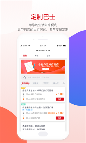 烟台公交app是由青岛市市民公共出行交通信息中心专门为烟台当地打造的一款便民服务软件,该软件主要就是针对当地的居民提供本地最新资讯、实时动态和各种生活便利功能。软件不仅可以随时查询自己附近的公交站点情况以及详细路线规划等相关内容哦!有需要的用户欢迎来绿色资源网下载使用!