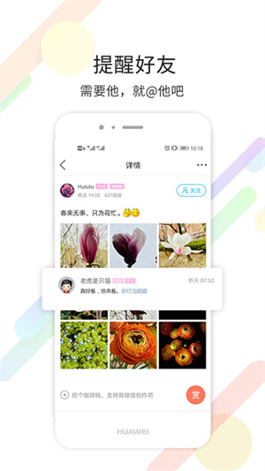 加入感兴趣的圈子结识更多志趣相投的朋友;好友动态即时分享给微信好友或QQ好友;
