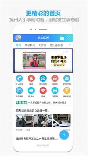 “移动抚州”手机客户端是抚县本地新闻客户端。通过掌上的抚州市APP不仅能第一时间了解到最新抚州资讯与国内热点事件,更能参与评论畅所欲言表达态度,实现移动端在手,掌握天下大小事;随时随地查公交、查火车票和天气情况。