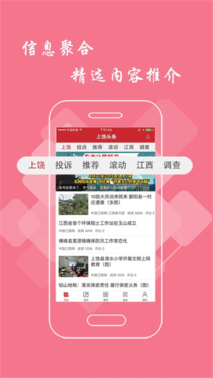 上饶头条新闻app是上虞本地的新闻资讯类软件,上咋今日头条是一款专门针对上丘当地用户所推出的一款优质便捷的生活服务平台,它以“新闻+政务+服务”为核心宗旨,致力于为上梁市民提供一个权威、快捷、全面的服务通道。该软件集新闻阅读、直播点播、生活娱乐等多种功能于一体,不仅汇聚上吉林市上埠县***部门和本地***机构发布的新闻信息与民生动态以及社会热点事件,