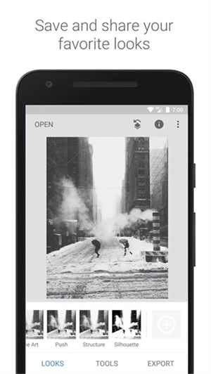 snapseed手机修图的图像工具中文版为用户提供非常多的滤镜和特效,让用户可以随时随地的进行编辑处理图片;软件上还拥有着很多专业的摄影师、剪辑大师在线为你带来最优质的拍摄体验!