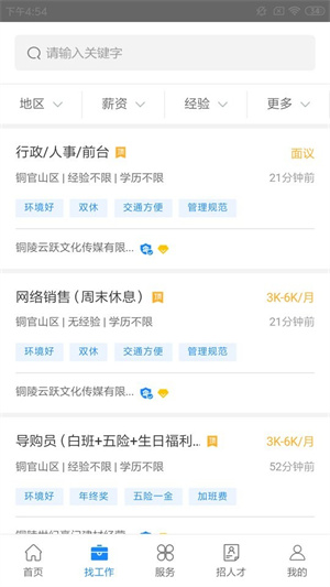 铜滨直聘APP会及时向广大铜山区县的求职者发布最新的招聘公告、政策变化等重要讯息,确保第一时间获取到最全面的市场动态情况。