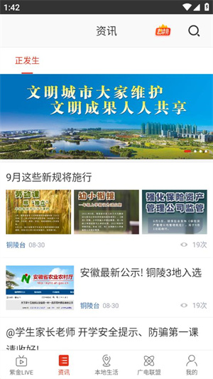 在铜陵app是由南京广电猫鱼新媒体中心推出的一款新闻资讯类软件,这款软件中用户可以根据自己喜欢的类型来选择不同的栏目内容进行阅读了解。同时软件还拥有超多便民的服务等你发现哦,欢迎大家下载使用!