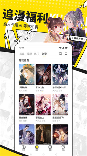 12、【种类丰富】国日韩美,欧美日韩应有尽有,各类题材(恋爱/校园/动作)连环漫画,同时拥有完结的、连载的漫画,类型齐全,完全免费。